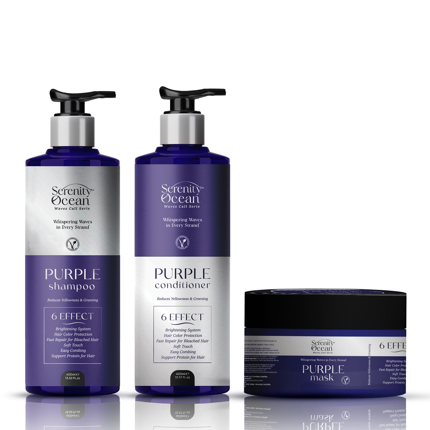 Saçlarınızın güzelliğini ortaya çıkarmak için tasarlanan Serenity Ocean Mor serimizle tanışın! İstenmeyen turuncu ve sarı tonlara anında veda edin. Özel formüllü mor şampuan, krem ve maske ürünlerimiz, saçınıza ihtiyacı olan profesyonel bakımı evinize getiriyor.